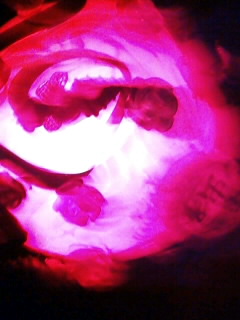 写真は口を描いてくれてアリガトウと言っているインコくんと左腕を失った直後のインコくん