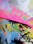 昨日はライブペインティングの練習中、テイスト的にもかなり初挑戦なこの自分の作品に色々自信が持てなく、電話して相談した。